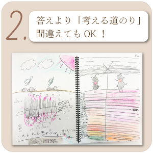 計算をどれだけ鍛えても、AIには勝てないし、逆に単純回路を鍛えることになります。ゼロイチで使う教材は、自由に絵を描きながら解いていきます。間違えても思考回路は作られるのです。